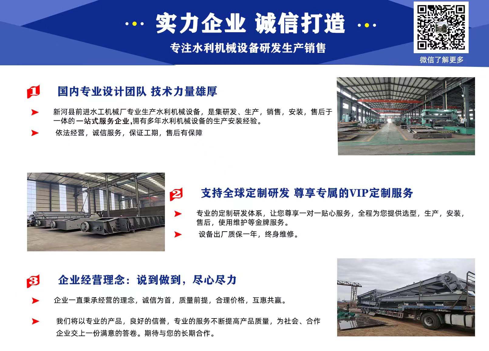 前進水工優(yōu)勢:具有專業研發(fā)團隊,精湛的制造工藝,嚴謹的檢驗技術,完善的售后服務